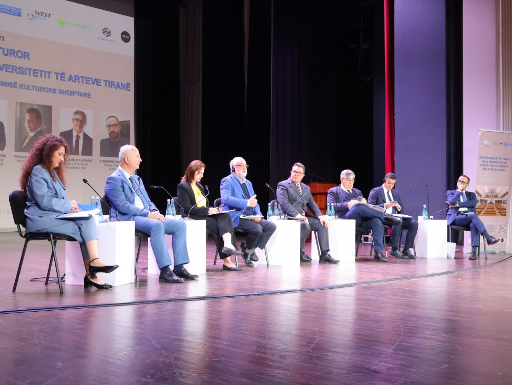 For the first time in Albania, the Catholic University “Our Lady of Good Counsel” is presenting an initiative that supports and protects the country’s heritage, in close collaboration with government institutions, the University of Florence, the business sector—such as Tecnopolo d’Abruzzo—and technical partners including Palmerini SCT, West Aquila Srl, Comitech Srl, and MGAD Design. The event was brought together, at the Grand Concert Hall of the University of Arts, leaders and representatives from universities, relevant ministries, Members of the European Parliament, architects, diplomats, students, and other guests.