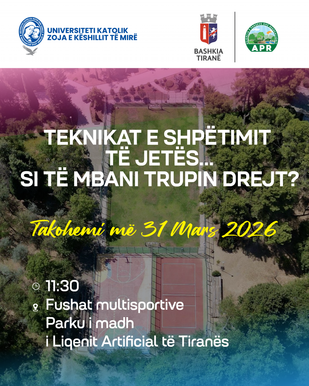 Il 31 marzo 2026, presso i campi polisportivi del Grande Parco del Lago Artificiale, a partire dalle 11:30 del mattino, si terrà una giornata aperta di lezioni e pratica per tutti i maturandi del liceo della città di Tirana